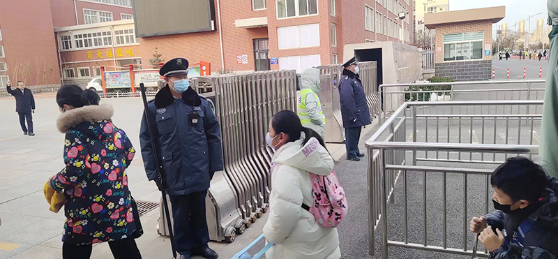 当天早晨,同学们陆陆续续开始上学,校园保安们已经提前来到学校门口,严格按照定人、定岗、定责的机制开启护学模式,开展学生进出和应急通道设置、秩序维护等安保工作。校园保安用实际行动,夯实校园安保工作基础,牢固树立“校园安全无小事”的意识,筑起校园安保“钢铁长城”。