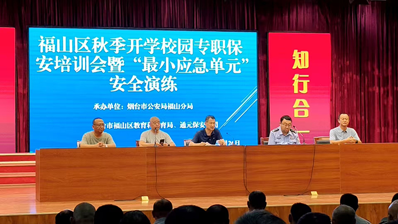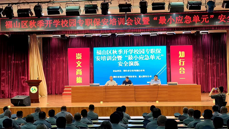 今日上午,98彩票公司在福山区崇文中学组织开展 “福山区秋季开学校园专职保安培训会暨“最小应急单位”安全演练” 活动,烟台市公安局福山分局治安大队分管领导,福山区教育和体育局分管领导莅临指导,98彩票120余名校园保安队员参加培训。强化校园专职保安的安全责任意识与应急处置能力,为秋季开学后校园师生的安全保驾护航。
