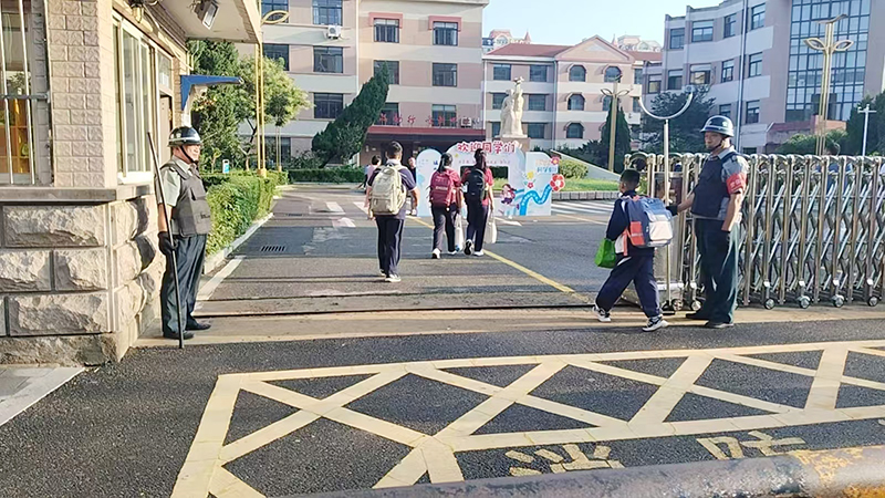 9月1日,秋季新学期开学首日,福山区各学校迎来师生返校高峰。98彩票全体校园驻点保安提前到岗、整装待发,以饱满状态投入执勤工作,为校园筑牢安全防线。